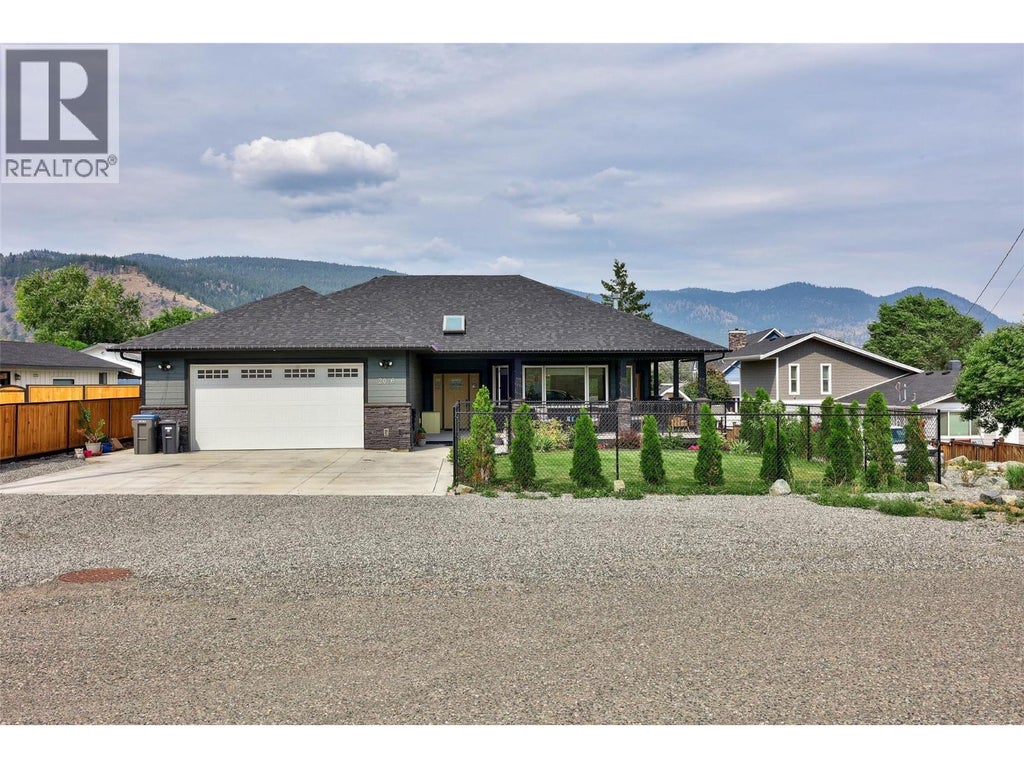 This stunning custom-built rancher offers the perfect blend of style, comfort, and functionality. Featuring 2 bedrooms and 2 bathrooms, this home boasts an open concept floor plan ideal for both everyday living and entertaining. The gorgeous custom kitchen is a true showpiece with stainless steel appliances, quartz countertops, a custom backsplash, pantry, and an abundance of storage. Throughout the home you’ll find vinyl plank flooring, solid wood interior doors, and 9 ft ceilings that add to the sense of space and quality. The custom gas fireplace creates a warm focal point in the living area, while roller shades offer a sleek finishing touch. The 550 sq. ft. double garage provides plenty of parking and storage, and the impressive 30’ x 30’ detached shop includes a guest bedroom—perfect for visitors, hobbies, or a home-based business. Outdoor living is equally inviting with a charming front wrap-around veranda for relaxing evenings, and a large back deck overlooking the beautifully manicured, fully fenced yard. Lane access, mature fruit trees, and lush landscaping complete the picture. Additional features include RV parking, insulated Hardie board siding, hot water on demand, and central air for year-round comfort. LISTED BY RE/MAX LEGACY. Call for your private viewing. (id:6289)