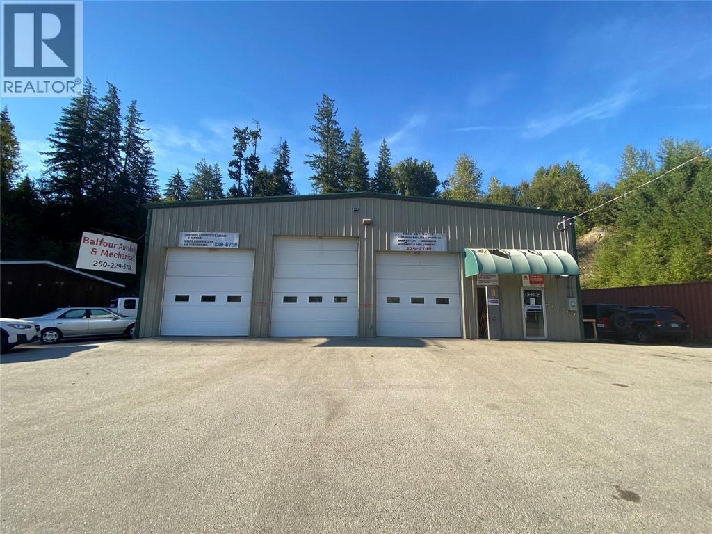 7699 Highway 3A is located in Balfour, BC – just ~20 minutes from Nelson, BC and featuring +250 feet of direct frontage along Highway 3A. Featuring a ~3,950 SF steel frame industrial building built in 2002, and complemented by a ~2,800 SF secondary commercial building with an existing short-term tenant in place, and a +0.5-acre development lot with lake views, the property offers business owners and investors broad flexibility for a wide range of potential uses. Representing one of the Kootenays’ newest industrial buildings, the primary industrial building’s highly functional specifications with modern standards include open-concept warehouse area with no interior columns, clear heights up to ~18 feet, 400 amp three phase power, four grade-level doors (two 14 ft. x 12 ft. and two 12 ft. x 12 ft.), a 5-inch concrete floor, and +500 SF of mezzanine storage. With ~1.55 acres of total land area, including the development lot with lake views and separate access, the property further offers substantial available land for outside storage or development of a residence or additional commercial buildings. (id:6289)