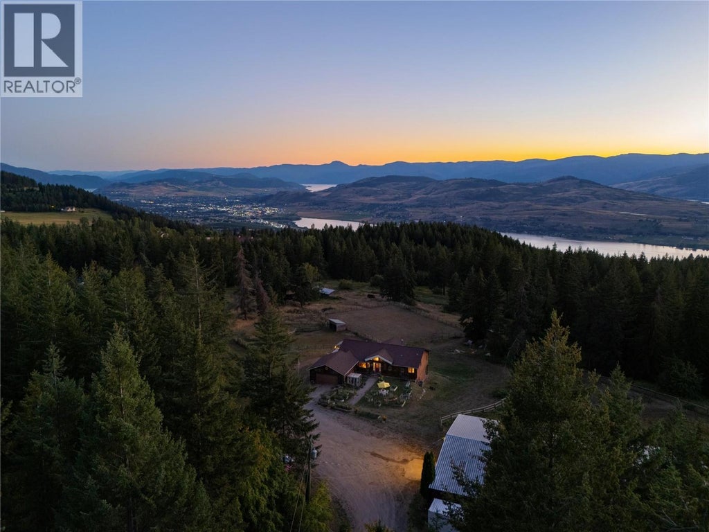 A once-in-a-lifetime estate with sweeping lake and mountain views, this 62-acre property captures the very best of Okanagan living. Perfectly suited for horses or ranching, it features a 96’ x 63’ barn with 10 stalls, tack room, office area, fully wired workshop, abundant storage, and a brand-new roof. The acreage has been thoughtfully cleared with wide trails weaving to the edge of the property, offering endless opportunities for horseback riding, off-roading, or peaceful walks through nature. Out of the ALR and with subdivision potential, the land itself is as versatile as it is beautiful. The custom-built home provides room for the entire family with 4 bedrooms and Office (or 5th Bedroom), 3 bathrooms, a double garage, and a host of upgrades including a new kitchen with appliances, new flooring, remodelled bathrooms, updated internal doors, trim, gutters (2025), hot tub pump, and well pump (2022). Additional comforts include built-in vacuum, heat pump with air, fireplace, and a top-floor remodel completed in 2021. Outdoors, the front English Garden creates a stunning welcome while the new deck pergola is perfect for soaking in the serene surroundings. Offering the ultimate balance of privacy, recreation, and potential, this remarkable estate is more than a home—it’s a lifestyle. (id:6289)