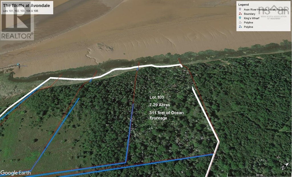 Welcome to The Bluffs at Avondale! This oceanfront lot is 7.29 acres with 311 feet of frontage and offers spectacular views of the worlds highest tides and the setting sun. Zoning allows for 2 homes plus potentially two secondary living units per lot (Buyer to confirm). This lot is partially field and partially wooded and has a QP septic report done already (C2). This is a rare opportunity to own a lot near the Avondale Waterfront and is located less than a 5 minute walk to the public boat launch and the many annual festivals at the Avondale Wharf and community space. The award winning Avondale Sky Winery is less than a 10 minute walk from the property. Experience peaceful country living with town amenities just a 15 minute drive away in Windsor and a moderate 45 minute drive to Halifax. Shared laneway to lot line. (id:6289)