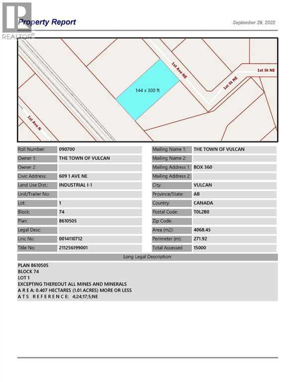 Industrial lot for sale in the Town of Vulcan Industrial Subdivision. Here is an opportunity to purchase one, or more industrial lots, at an affordable price to set up your business. Term of sale - within 12 months from the closing date, a development agreement is to be completed, and construction on the property shall commence within 12 months of the date of the execution of the development agreement. (id:6289)