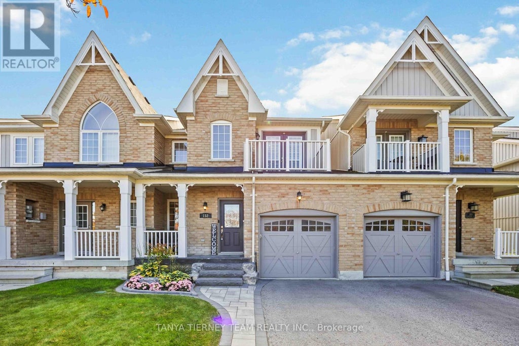 Beautifully upgraded freehold townhome nestled in one of Brooklin's most sought after communities! This stunning 3 bedroom, 3 bath townhome offers the perfect blend of comfort, style & convenience with garage access to a private backyard & a walk-out basement - this home is designed for modern living. From the moment you arrive, you'll be greeted by a beautifully landscaped front featuring a custom interlocking walkway, irrigation system, natural stone steps & a charming front porch - the perfect spot to enjoy your morning coffee! Step inside to a sun-filled, open concept main floor adorned with gleaming hardwood floors, elegant california shutters & spacious principal rooms ideal for entertaining. The formal living & dining rooms offer a sophisticated setting for gatherings, while the cozy family room features a stunning custom stone gas fireplace & large picture window overlooking the backyard. The heart of the home, a family-sized kitchen boasts a large centre island with breakfast bar, stainless steel appliances, ceramic floors & a bright breakfast area with a walk-out to the raised deck. Enjoy summer barbecues with ease thanks to the built-in gas BBQ hookup & yard views. Upstairs, you'll find 3 generous bedrooms & a convenient study nook - ideal for homework or home office. The primary suite is a true retreat with a walk-in closet featuring custom organizers & a luxurious 4pc ensuite with a soaker tub. The 2nd bedroom offers its own walk-in closet & a walk-out to a private balcony overlooking the front gardens. Unspoiled walk-out basement offers incredible potential with a large above grade window, laundry area, rough-in for a bathroom, ample storage & direct access to the backyard patio & 8x12 garden shed. Located just steps from schools, parks & with easy access to Highway 407, this is a rare opportunity to own a beautifully maintained home in a family-friendly neighbourhood. Don't miss your chance to call 152 Shrewsbury Drive home! (id:6289)