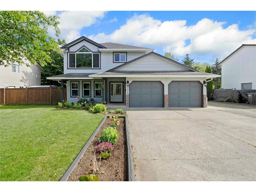 Welcome to this beautifully updated basement entry home in the Huntington area of Abbotsford. Offering 2,421 sq. ft. of living space, 5 bedrooms, 4 bathrooms, Rec Room, vaulted ceilings, A/C, security system, modern kitchen with SS appliances & an open-concept layout w/ tons of natural daylight. Loads of parking with a double garage, huge extended driveway, & even room for an RV. Enjoy the outdoors with a private south-facing sundeck and stylish wooden patio! Basement has a 1 bedroom suite w/ laundry & private entrance tucked beneath a covered outdoor patio. The fully fenced backyard backs onto a greenbelt & boasts mature trees, garden area & storage shed. Close to parks, shopping, and transit, this super clean, move-in-ready home is perfect for your growing family. (id:6289)