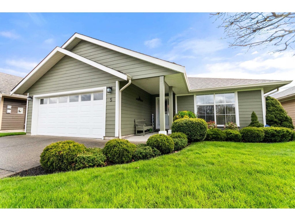 Welcome home to this IMMACULATE 2 bed, 2 bath ONE-LEVEL RANCHER in Agassiz's desirable Woodridge Place! A 55+ "Bareland Strata" option. Spacious floor plan; LvgRm / DinRm up front & Kitchen / FamRm at the back. UPDATES incl: Flooring throughout (vinyl plank through house, soft carpets in bdrms), Gas F/P stone surround. Lovely Kitchen w/ white cabinetry, centre island, S/S appliances. Large master w/ walk-in & 3pc ensuite. Fenced backyard has total privacy, a fully covered patio, and VIEWS of Mt. Cheam! CENTRAL A/C. Hardi siding, double garage. RV parking is available ($10/mo.), and LOW STRATA FEES are $105/month includes lawn care, garbage pick-up and snow removal. Convenient central location; walk to all Agassiz has to offer. Hang your heart & come and see why you'll love living here! (id:6289)