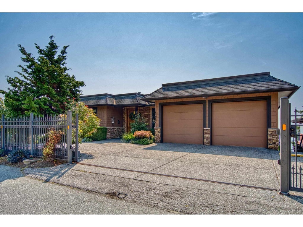 Sweeping ocean views from the moment you step inside the door. Very rare property with a fabulous 5653 sq. ft. home sitting on over a double lot of 8190 square feet next to parkland, with outstanding ocean views from all floors. Quality built home with access from lane to electric gate surrounding level entrance & garage with excellent rare guest parking. 2x6 Douglas Fir construction with stunning entrance door, Pella wood windows with Low E, 5 zone in floor heat on all 3 levels. Travertine floors throughout main areas, dark stained Maple cabinets, granite counters, high end appliances, control 4 lighting, sound system, butlers pantry, theatre room, wet bar on main floor, hidden TV with remote, electric awnings, high ceilings on all floors, air conditioning, oversized garage, lots of storage, extensive deck and patio areas, pleated shades and drapes. Bonus: legal 1 bedroom suite & separate area for guests. Gorgeous landscaping both front and back with water features. Truly one of a kind on the hillside. (id:6289)