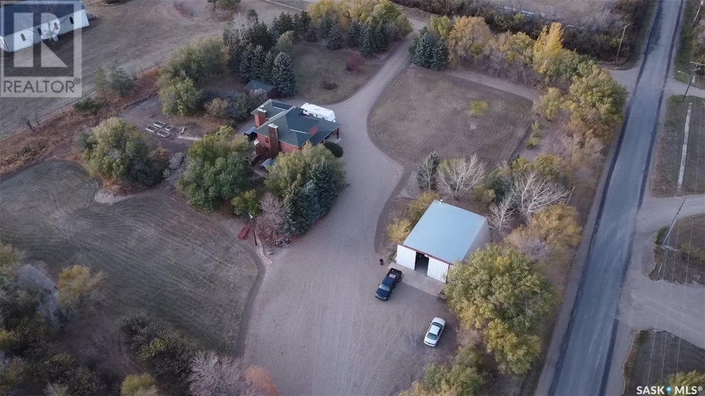 This heritage house and acreage is the largest in Dollard with huge opportunities to reno and modernize or live comfortably as is. The drive way is pull-thru connecting the street and avenue with over 100 mature trees around the perimeter. A 40x40 heated shop on the East side with 240 volt power and 16 foot sliding doors faces the South driveway. The house is positioned across the drive to the NW with a South facing fenced yard, also with mature trees, and a covered veranda wrapping around at the kitchen door. The North side carport provides parking for 2-cars while sheltering the front door. The driveway wraps around past a garden on the West side while also providing direct access to the cellar door. Another shed in the NW corner could be a 1 car garage or used as a super sized garden shed. Inside the house shows some updates in a very livable space. The kitchen includes stainless appliances and the living room has a beautiful brick fireplace. A separate and spacious main floor laundry is the last room behind the main floor full bath. The dining room includes original stenciled glass. Upstairs is the primary bedroom, two medium and on small bedroom. There is a 3pc bath on the second floor. The attic is accessed with a ladder and is insulated with lighting and stand up height making a huge storage space. The second floor also has a North door to a rooftop private patio, great for star gazing. The basement is finished with a rec room, plus cold room storage and mechanical. There have been recent upgrades to both water and electrical systems. The nearby town of Shaunavon has full service fuel, hardware, and grocery as well as schools, library, hospital, and rec center with curling and hockey. There is also the Plaza Movie theatre and summertime community pool. Leave the big city for small town life. (id:6289)
