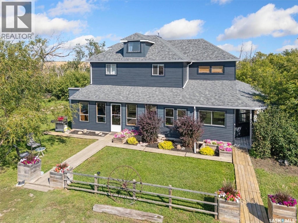 Welcome to the Waldner Acreage in the RM of Aberdeen. This unique property is located just 8 km south of Aberdeen and has been lovingly maintained for many years! With 5 bedrooms (including the loft area), and two bathrooms, this home can easily accommodate a growing family! You can definitely envision some fantastic family gatherings in the open living and dining area. Adjacent to the kitchen is a spacious walk-in pantry and a laundry room! 32 by 6.5 covered deck to the East and a fully enclosed screen porch to the south, this home has amazing spaces to enjoy the quietness of rural living! The lower level has tons of potential with 9 foot ceilings and access to outside from the basement. There is a propane furnace, central air conditioning, central vac and newer (2021) electric hw heater. The shingles were replaced in 2019. Please note: the owners state that the original farmhouse (built in 1960), burned to the ground. The current home was moved onto a new basement foundation in 1994. This home was originally built in 1905 then gutted and moved to the current location. This is an amazing property with a unique story! (id:6289)