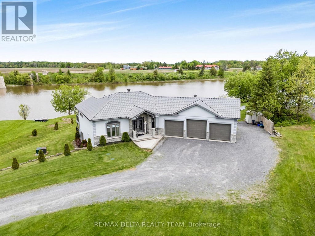 Enjoy life! Entertain and relax with stunning views of the river and sunset in this one of a kind custom walk out bungalow with an inground pool, tiki bar, stretching balcony with a view to die for and a place to dock your boat! Convenient 3 car garage and a bonus 810 square foot garage (presently used as a gym) with 4th door at the back perfect for a workshop or storing and repairing jet skis/ snow mobiles. The radiant flooring throughout and ICF foundation makes this home economical to heat and cool. Open concept main level with vaulted ceilings. Kitchen with quartz countertops, huge island, high end appliances with full fridge and freezer, gas stove with double ovens. Main level also features two natural gas torch fireplaces and a water feature. Primary bedroom with access to balcony and river views. Main bathroom has a large walk-in shower. Bright basement with family room and panoramic windows, spacious 3rd bedroom 3rd bathroom, storage room and access to gym/workshop. Salt water pool with lots of patio space to lounge around in. (id:6289)