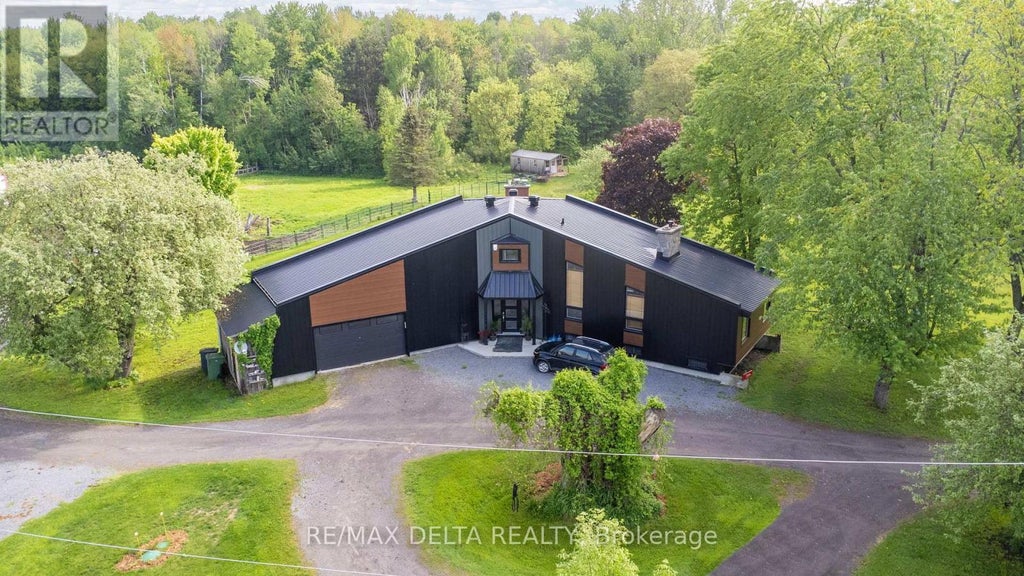 This one-of-a-kind property is perfectly tailored for horse lovers and country lifestyle seekers. The warm and character-filled home features an open-concept loft-style primary bedroom with ensuite and ample storage, a main floor bedroom, and a fully finished lower-level in-law suite with a separate entrance, living area, bedroom, and kitchenette. A second bedroom on the lower level offers flexibility ideal as part of the main home or the suite. The heart of the home includes a charming kitchen with brick accents and a bright living/dining area with vaulted ceilings and exposed beams. Equestrian facilities include a 12-stall barn (7 foaling stalls), two tack rooms, feed room, large hay loft, and ample storage. Indoor Coverall arena with updated lighting, and enjoy the outdoor sand ring, multiple paddocks with shelters, and a scenic pond for winter skating. Located just 10-15 minutes from Rockland and 30 minutes from Orleans, this peaceful retreat offers the perfect blend of rural tranquility and urban convenience. (id:6289)
