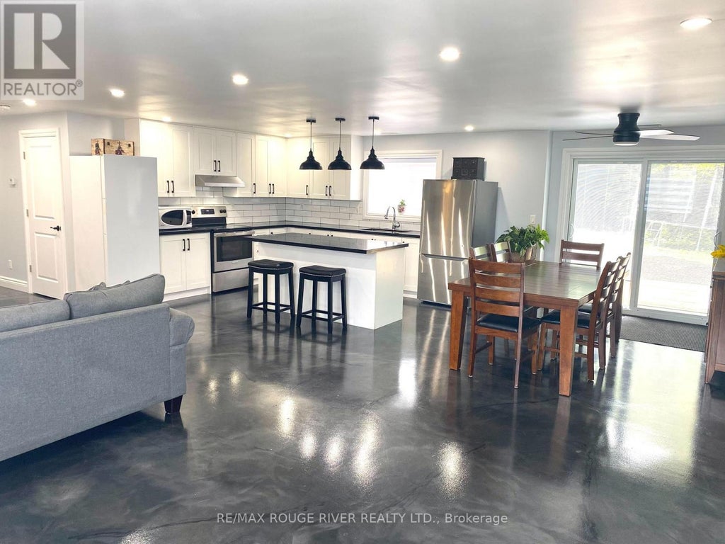 Discover tranquility in this beautifully appointed lower-level apartment, privately nestled in a serene setting with stunning views of Rice Lake. This spacious residence offers a harmonious blend of modern comfort and natural beauty, perfect for those seeking a peaceful lifestyle with convenient access to nearby towns. Bright, open-concept kitchen featuring gleaming quartz countertops, generous cabinetry, and included appliances: fridge, stove, and microwave Polished concrete floors with radiant heating throughout, offering both style and warmth Expansive living and dining area bathed in natural light, ideal for relaxing or entertaining! Two spacious bedrooms with large windows and ample closet space. Modern 4-piece bathroom with tasteful finishes .Shared ensuite laundry for added convenience. Private walk-out to a lush backyard oasis, complete with a gentle creek and ambient sitting area. Separate entrance ensures privacy and ease of access. Two dedicated parking spaces. Located just a short drive from Cobourg, Hastings, and Campbellford, offering the perfect balance of rural charm and urban convenience. Monthly Rent: $2,000.00 plus Utilities: $100/month (plus hydro, separately metered) Propane: Tenant responsible for shared refill costs. No garage access, Tenant responsible for garbage disposal and associated fees. (id:6289)