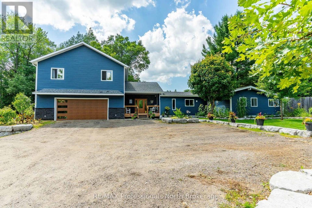 Welcome to this stunning executive home located on a quiet road with shared deeded access to the Gull River! Renovated from top to bottom with a garage and loft addition, there's plenty of space for a large or extended family. The lot is beautifully landscaped with a peaceful koi pond, creating a unique park like setting. The main floor boasts an open kitchen and living space with plenty of storage cupboards, brand new 3pc bath with walk in shower, laundry room and primary bedroom. A formal dining space w/ walkout to deck creates the perfect ambience for entertaining family and friends. The upper level loft addition with two bedrooms, den, office, and family room would make the perfect living space for extended family members or a live-in caregiver. The lower level with new flooring features a rec room, guest room, office space and 4 pc bath. Enjoy fishing, swimming and kayaking from the Gull River. Easy access to West Guilford and Haliburton and all the amenities. Upgrades include full interior renovation, A/C, garage with in floor heating and full loft, siding, shingles, windows, flooring, doors, decks, landscaping, irrigation system and more! A truly exceptional offering for the whole family! (id:6289)
