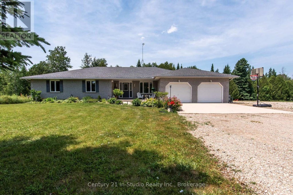 This stunning property is nestled on 10.41 acres of private, rural land and offers tranquillity and convenience. Featuring a serene pond, an animal paddock, and ample space for all your four-legged companions. Step inside this custom-built brick bungalow and be welcomed by the spacious, open-concept main floor. Cozy by the Napoleon fireplace in the living room, or enjoy cooking in the expansive kitchen. The main floor also features a practical laundry room with a half bath for convenience. The impressive primary bedroom boasts a walk-in closet, a private walkout to the deck, and a luxurious 4-piece ensuite with a jet soaker tub and separate shower. Two additional bedrooms and a 4-piece bathroom complete the main level. Downstairs, the lower-level walkout offers even more space to entertain and relax. Enjoy the second fireplace, a full wood bar, a cozy sitting area, a rough-in for an additional bathroom, and a private gym with its sauna perfect for in-laws or guest accommodations. The double-car garage provides ample storage, and the property offers extra space to expand with more paddocks. This home provides a peaceful country lifestyle without compromising access to town amenities. For the adventurous soul, it's just minutes from snowmobile and hiking trails, kayaking on the Saugeen River, and opportunities for biking and horseback riding in nearby Allen Park. With its well-maintained, natural beauty, this property is a gem you won't want to miss! (id:6289)